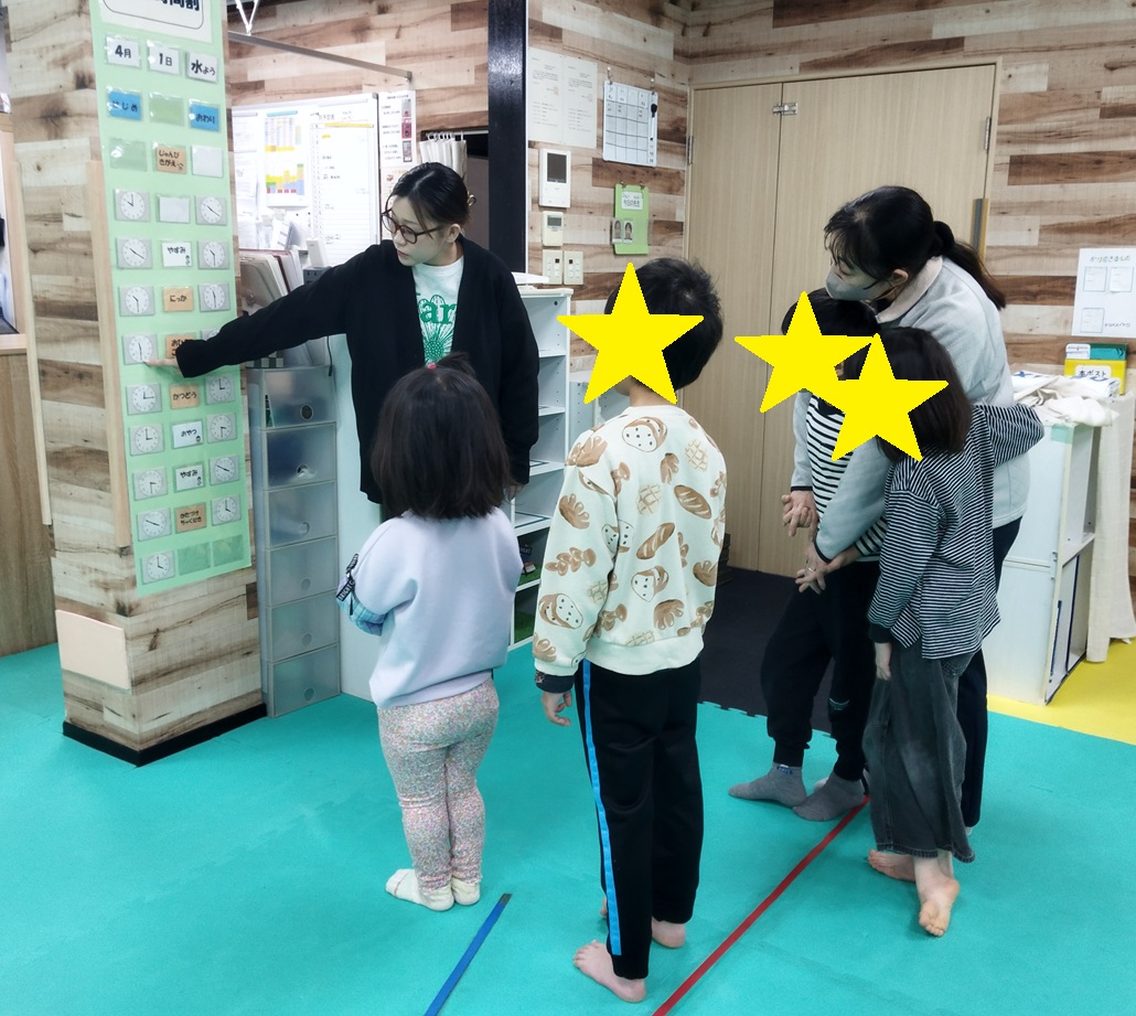 今は何の時間? 次は何をするの? ひと目で分かることで、子どもたちが見通しを持ち、 自分で考えて行動できるように支援しています😊 また、来所してから準備に戸惑わないように 「てじゅん