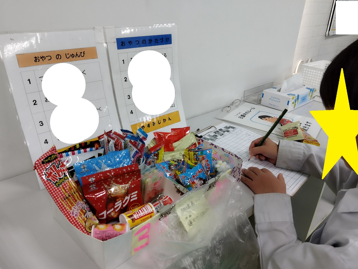 3時〜3時半は、みんなが楽しみにしているおやつタイム🍘🍭 この時間内に通所した子から、随時おやつを楽しみます。 時計を見ながら 「そろそろおやつだし…おもちゃを片付けようかな」 と、先生の