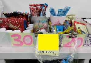 30円と20円の箱の中から“合計50円になるように”自分で好きなお菓子を選ぶスタイル。