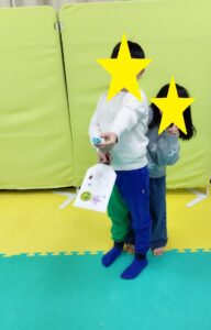 完成後は、さっそく手作りボールを使って遊びました。