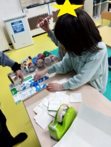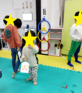 完成後は、さっそく手作りボールを使って遊びました。